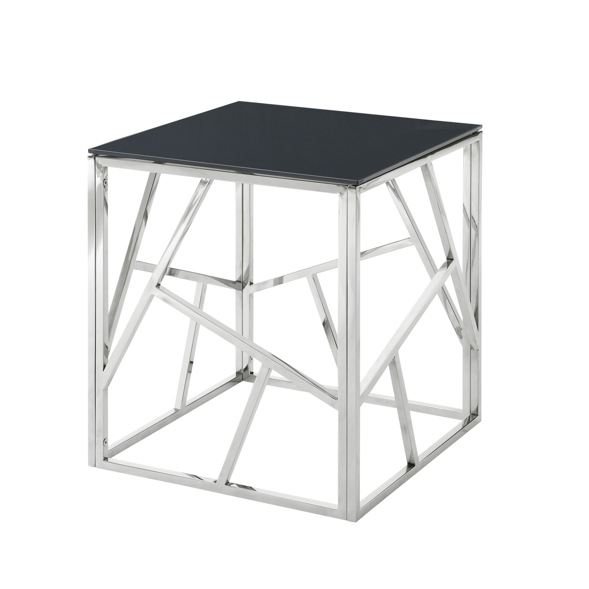 Home > 20 Inch Modern Glass End Table with Geometric Metal Frame, Accent Table Nightstand Furniture Corner Table for Living Room,Home Office,Bedroom - Chrome